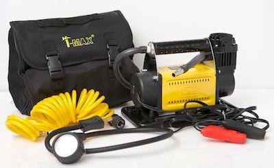 Найпотужніший портативний автомобільний компресор від бренду T-Max. Продуктивність дозволяє будувати на його основі пневмосистеми і користуватися пневмоінструментом. Продуктивність 160 л/хв при тиску в 10,5 Атм. Підійде не тільки для позашляховика з величезними колесами, але і для вантажівок та спецтехніки. Працює від бортової мережі 12 Вольт, підключається за допомогою клем -"крокодилів". Довжина останніх 2,5 метра.