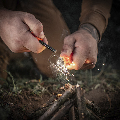 Туристичне кресало – вогниво для туризму Fire-Maple FMP-709. Дозволить швидко і легко розпалити багаття або підпалити туристичний пальник, при будь-яких погодних умовах. Кемпінговий брелок - кресало складається з двох частин та виготовлений з магнієвого сплаву із сталевим кресалом, діаметром 8мм. Кресало "висікає" іскри температурою 2500 - 3000 градусів за Цельсієм, навіть будичи мокрим. Ресурс кресала становить до 12000 іскор. Вогнебезпечний під час транспортування. Яскравий помаранчевий корпус Fire-Maple дозволить швидко знайти аксесуар у рюкзаку чи темний час доби. Незамінний атрибут для бушкравту, кемпінгу, риболовлі та екстремальних подорожей.